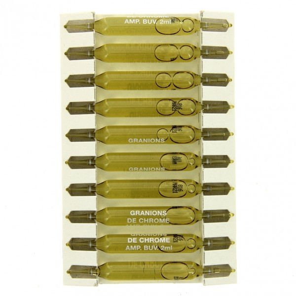 Granions Chrome 200 µg est disponible en lot de deux boîtes de 30 ampoules prévues pour un programme de 30 jours.