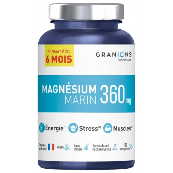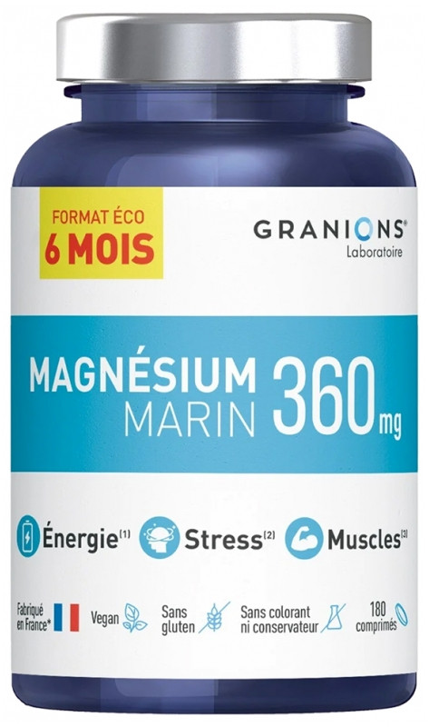 Le Magnésium Marin 360 mg des laboratoires Granions est un excellent produit pour gagner en énergie, pour gérer ses épisodes de stress et pour améliorer ses fonctions musculaires. Il s’avère être une solution durable aux personnes sujettes à la fatigue, au stress ou ayant un mode de vie actif.