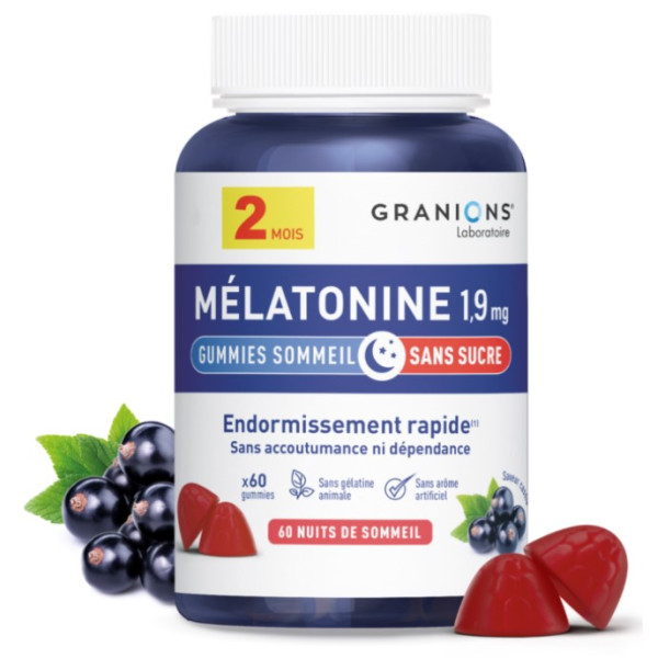 Les gummies Mélatonine 1,9 mg du laboratoire Granions est un complément alimentaire sans sucre indiqué pour favoriser un endormissement rapide.