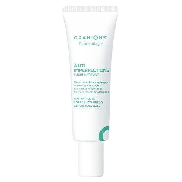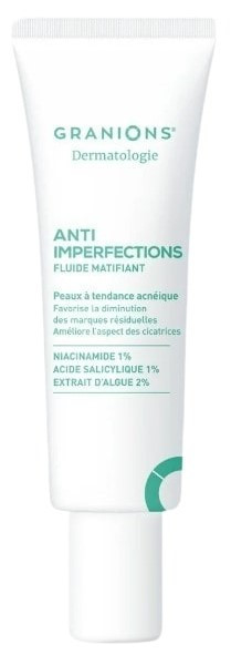 Dermatologie Fluide Matifiant Anti-Imperfections 40ml de Granions est un soin quotidien du visage. Il combine les propriétés d’actifs reconnus pour réduire sensiblement l’apparence des imperfections et les marques résiduelles.