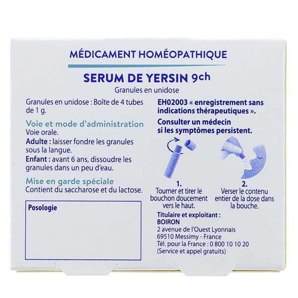 Médicament homéopathique Serum de Yersin 9ch Boiron.