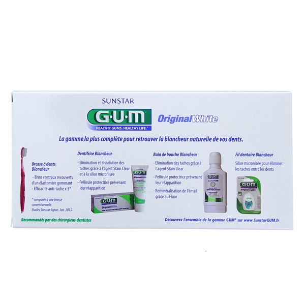 Le dentifrice Original White est un produit de la marque Gum. Il est particulièrement efficace pour éliminer les colorations des dents sans dégrader l'émail pour retrouver la blancheur naturelle des dents.