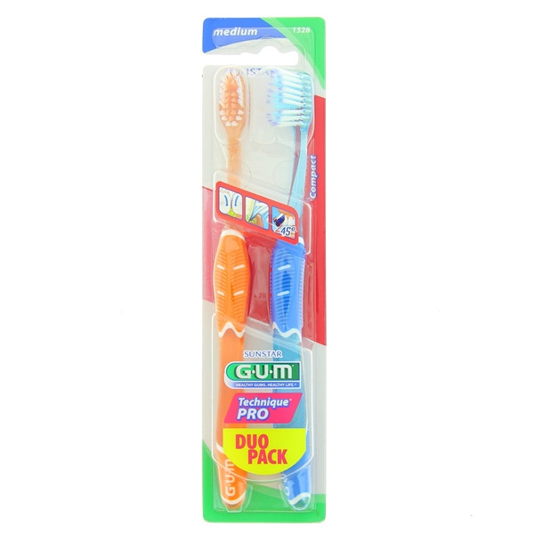 Duo Pack contenant 2 brosses à dents Technique Pro Medium Compacte Gum.