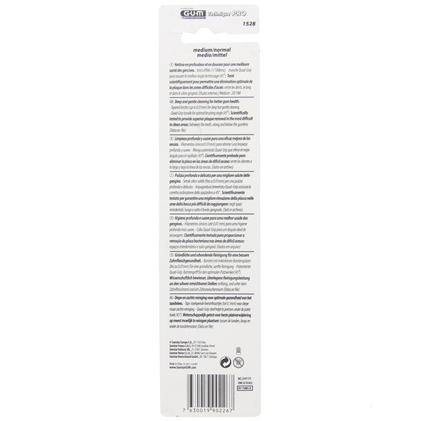 La brosse à dents Technique Pro Medium Compacte Gum nettoie en profondeur les gencives. Elle permet de garder la propreté et la bonne santé des dents. Les poils effilés de cette brosse à dents pénètrent plus en profondeur le long et en dessous du sillon gingival. Cette structure particulière des poils permet d'éliminer la plaque dentaire de manière plus efficace, notamment dans des endroits qui sont difficiles d'accès pour une brosse ordinaire. Grâce à son manche Quad-Grip antidérapant offrant un meilleur angle de brossage (45°) et sa souplesse à 20/100, le brossage est facilité.