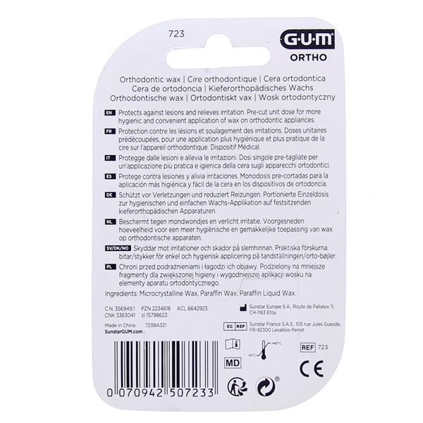 La cire translucide Ortho de la marque Gum est tout indiquée pour la prévention des lésions et le soulagement des irritations pouvant être causées par le port d'appareils orthodontiques.