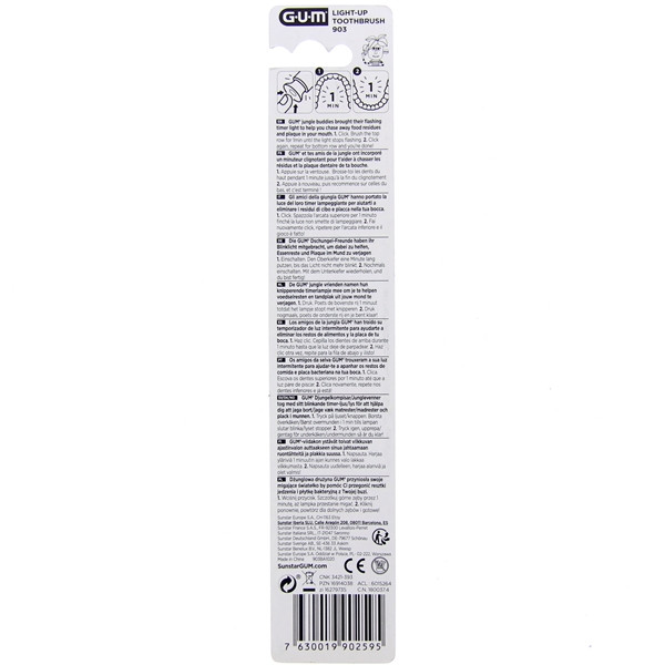 La brosse à dents Junior 6+ Timer Light de la marque Gum est destinée aux enfants de 6 ans et plus. Elle possède des poils constitués de microbrins soyeux et souples et un minuteur clignotant pour offrir un nettoyage simple et efficace.