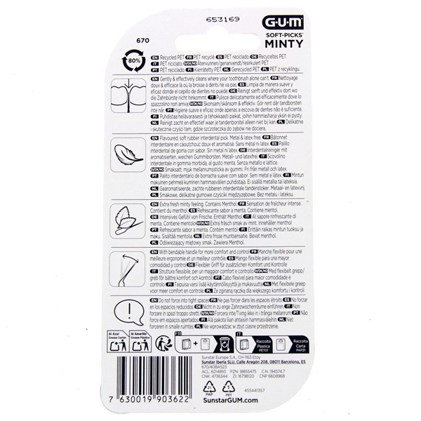 Les brossettes interdentaires Gum Soft Picks Comfort Flex sont composées de caoutchouc souple. Elles ne contiennent ni métal ni latex. De plus, elles sont enrichies en menthol pour une sensation de fraîcheur agréable. Le coffret est livré avec un étui de voyage pratique.