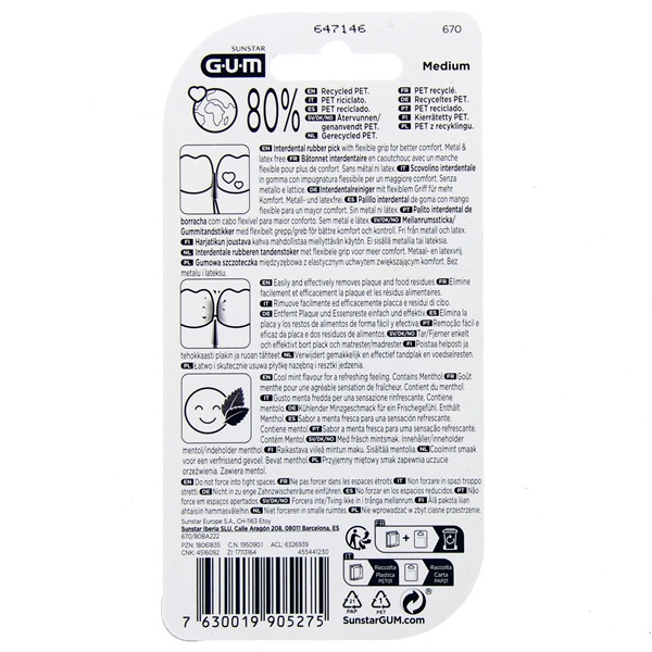 GUM propose ici un produit simple, efficace et plaisant, à emporter partout grâce à l’étui inclus. Ce lot économique de 80 bâtonnets convient particulièrement aux utilisateurs recherchant une solution à long terme pour leur hygiène interdentaire.