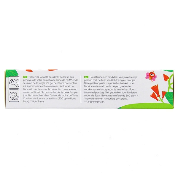 Le dentifrice Kids 3+ pour enfant de 3 à 5 ans de la marque Gum est idéal pour préserver la santé des dents de lait et des gencives. Il est formulé avec du fluor et de l'Isomalt pour favoriser la prévention des caries et renforcer l'émail. Goût Fraise.