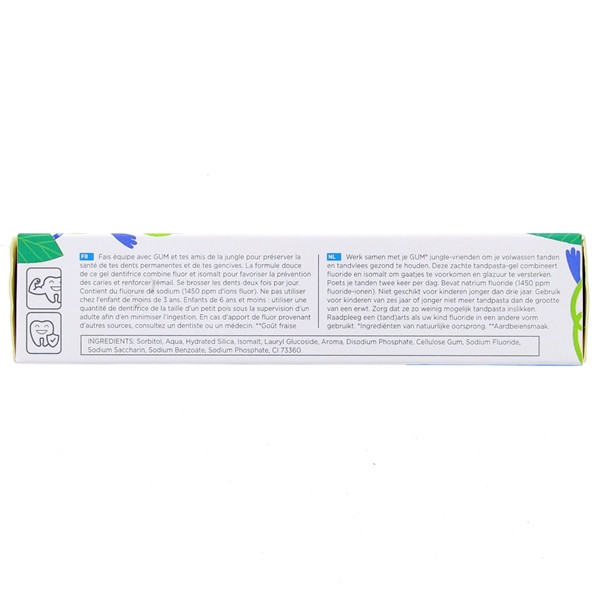 Le dentifrice pour les Juniors 6+ de la marque Gum est conçu pour assurer la consolidation de l'émail des dents de l'enfant en vue de prévenir efficacement tout risque d'apparition de caries. Goût fraise.