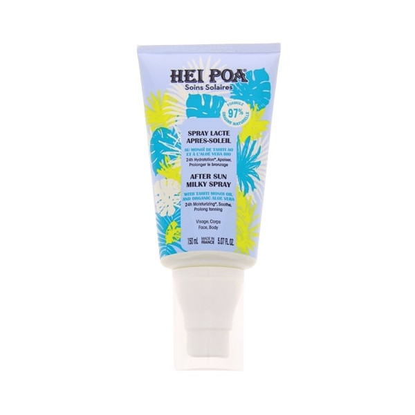 Le Spray Lacté Après-soleil Hei Poa est formulée à base de 97 % d'ingrédient d'origine naturelle dont le Monoï de Tahiti AO et l'Aloe Vera Bio. Il permet d'apaiser et d'hydrater efficacement la peau après une exposition au soleil. De plus, le bronzage est sublimé et prolongé.