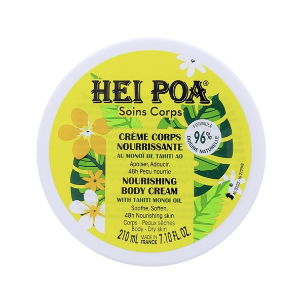 La Crème corps nourrissante au monoï fait partie de la gamme « soin du corps » de Hei Poa. Fabriquée en France, cette crème est conditionnée en pot de 210 ml.