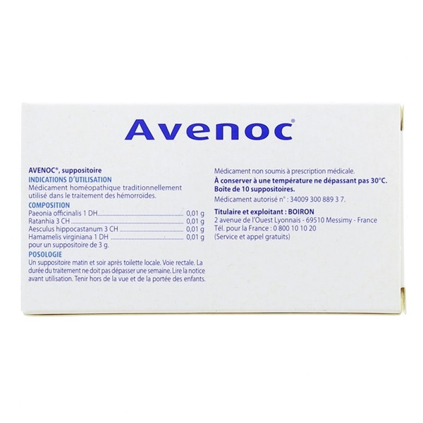 Les suppositoires Avenoc sont un médicament homéopathique notamment indiqué dans le traitement des hémorroïdes.