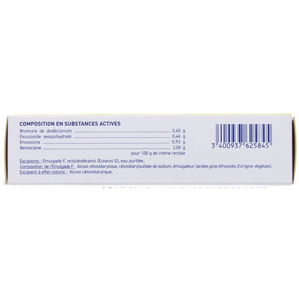 Il est utilisé dans le traitement symptomatique des douleurs et des démangeaisons de l'anus, en particulier dues aux hémorroïdes.