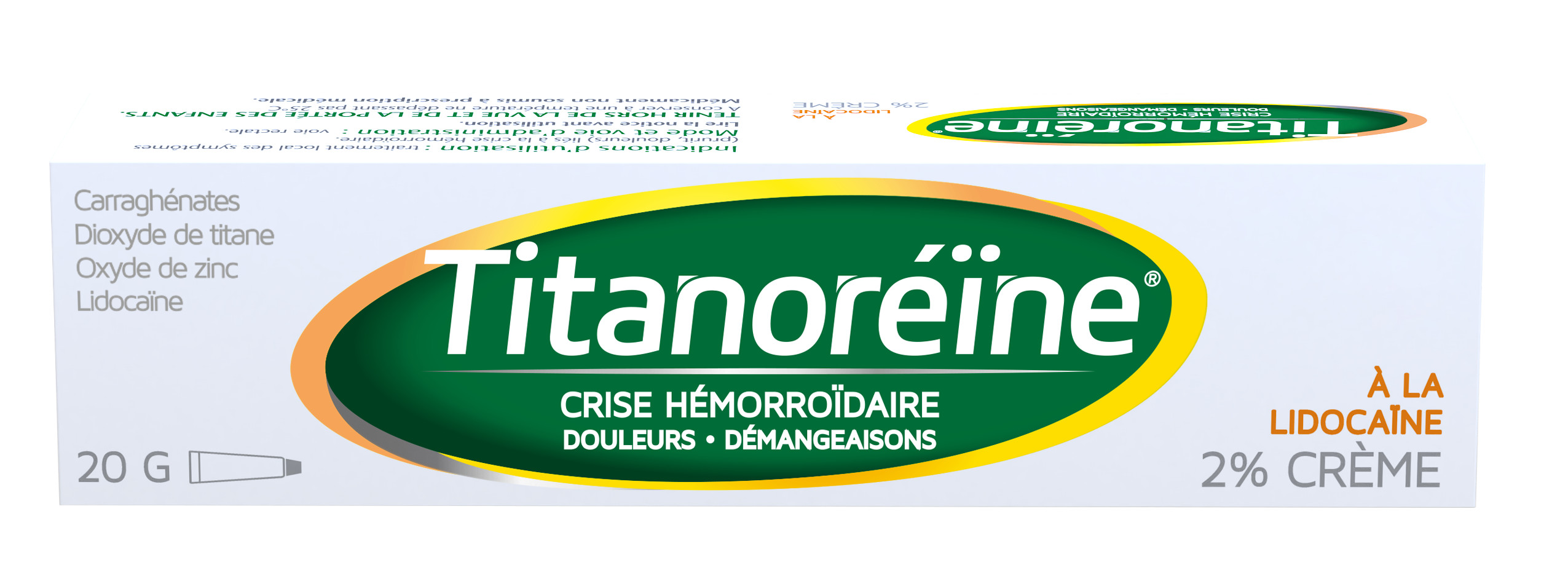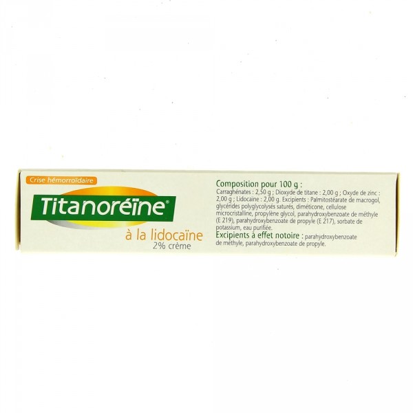 Cette crème rectale contient 2% de lidocaïne. Elle est utilisée dans le cadre d'un traitement des hémorroïdes. La Titanoréïne à la lidocaïne peut être appliquée une à deux fois par jour sur une période courte de traitement.