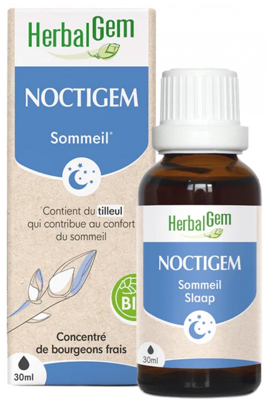 NOCTIGEM proposé par le laboratoire Herbalgem est un complexe qui favorise l’endormissement et augmente la qualité du sommeil grâce au bourgeon de tilleul, qui possède à la fois les propriétés calmantes de la fleur et drainantes de l’aubier et au bourgeon de figuier qui agit en profondeur sur tout l’équilibre nerveux.