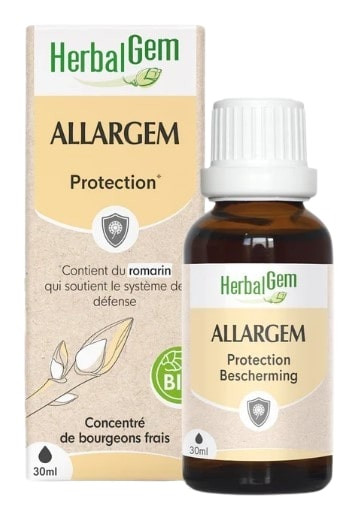 Allargem d'Herbalgem est un bouclier naturel contre les manifestations allergiques. Allargem est un complexe d'extraits de bourgeons frais, à base de bourgeons de cassis et de jeunes pousses de romarin, de teinture mère de propolis brune et verte.