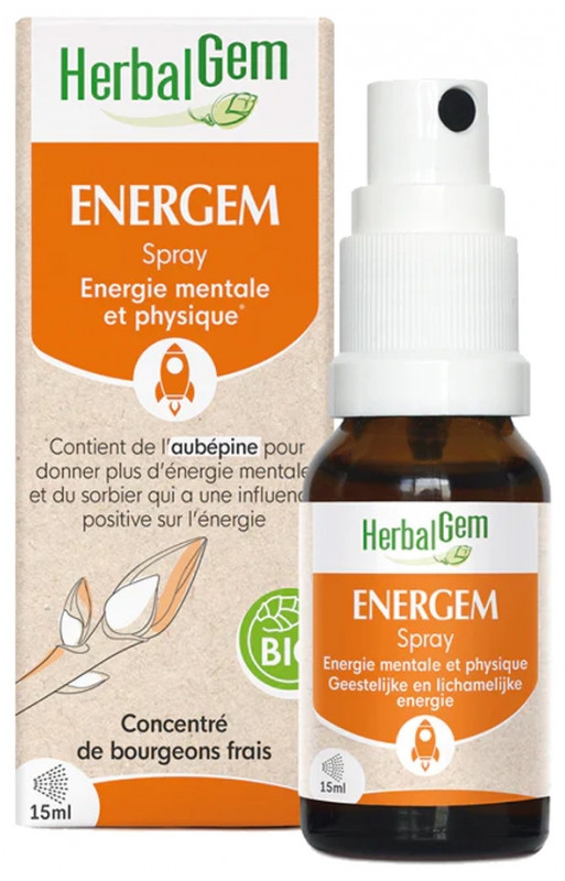 Energem Spray Bio d'Herbalgem est un complément alimentaire à base d'aubépine indiqué pour donner plus d'énergie mentale et de sorbier à l'influence positive sur l'énergie.