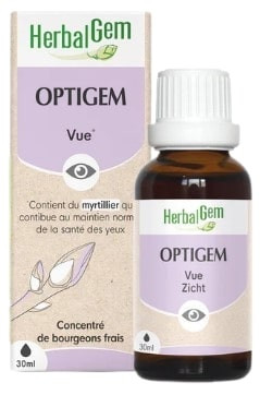 Optigem Bio d'Herbalgem est un complément alimentaire associant des jeunes pousses et des nutriments dans le but d'améliorer la fonction oculaire et soulager la fatigue de l'œil.