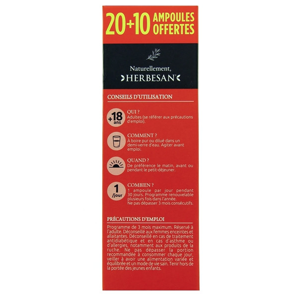 Disponible en boîte de 20 ampoules + 10 ampoules offertes.