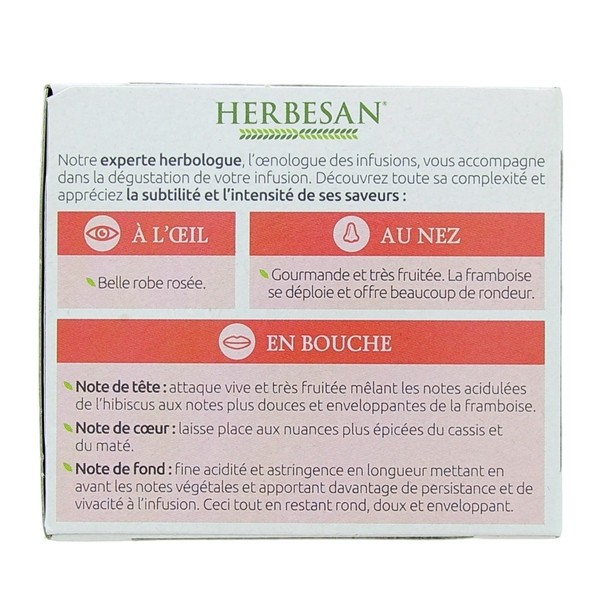 Herbesan Bio Perte de Poids affirme une note d’arômes assez distinctive. Il est caractérisé par une saveur fruitée et acidulée grâce au mélange de l’intensité du cassis, de la framboise et de l’hibiscus. Il possède un effet diurétique très utile pendant le programme de perte de poids. Retenez que cette décoction est destinée aux personnes âgées de plus de 15 ans.