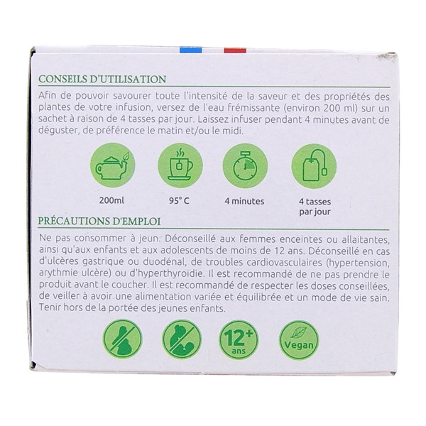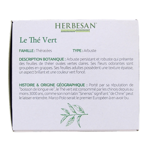 L'infusion Thé Vert Bio de la marque Herbesan est formulée à base de 100 % de plantes. Le Thé Vert est reconnu pour contribuer au tonus et à la vitalité.