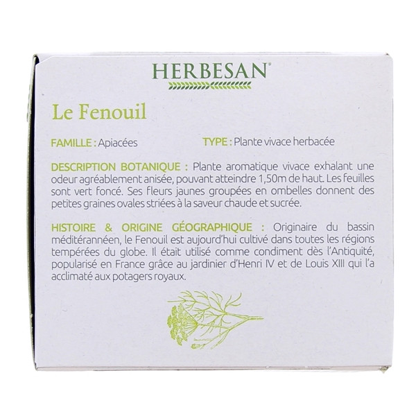 L'infusion Fenouil Bio de la marque Herbesan est formulée à base de 100 % de plantes. Le Fenouil est une plante reconnue pour faciliter le transit et retrouver un confort digestif.