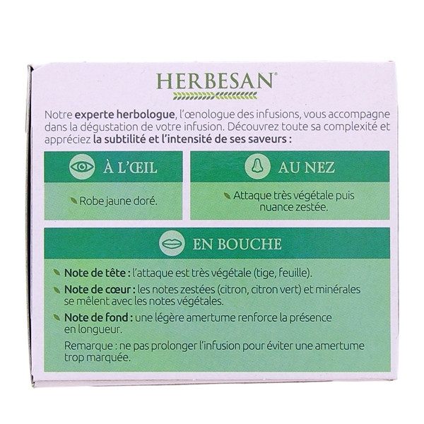 L’infusion bio à la mélisse Herbesan se présente en une boîte contenant 20 sachets. Chaque unité renferme les précieux bienfaits de la mélisse, soigneusement préservés pour vous offrir une expérience gustative et thérapeutique agréable.