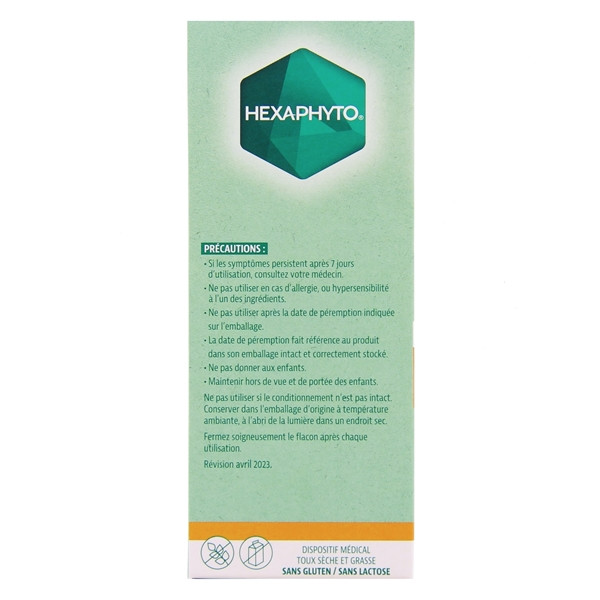 Êtes-vous sujet à des toux sèches ou grasses ? Sachez que le Sirop Toux Adulte 150 ml de Hexaphyto permet de rétablir le confort respiratoire et soulage la douleur, les irritations et les inflammations. La toux est associée à différentes affections des voies respiratoires supérieures comme le rhume, la grippe, la laryngite ou la bronchite. Ce sirop assure la protection de la muqueuse pharyngée en formant un film sur les voies respiratoires supérieures. Il fait disparaître la douleur en cas de toux sèche et protège la muqueuse des agents irritants. Lors d'une toux grasse, il fluidifie le mucus et l'hydrate pour assurer son expectoration.