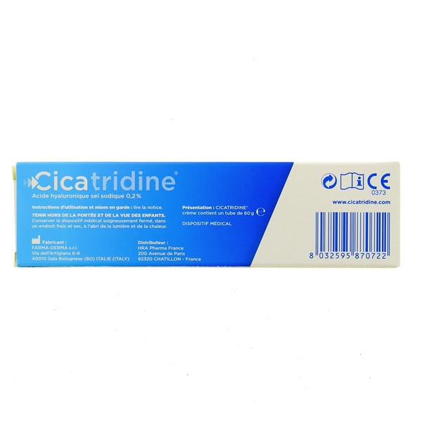 À base d'acide hyaluronique, la crème Cicatridine est un dispositif médical utilisé pour réparer, hydrater et favoriser la cicatrisation de la peau en cas d'irritations et rougeurs de la peau, peeling, épilation, laser et lésions cutanées superficielles ou profonde.