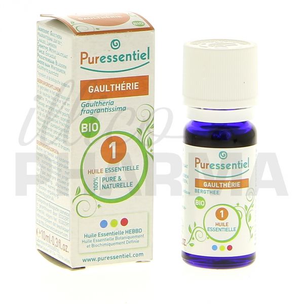 L'huile essentielle Gaulthérie BIO de Puressentiel est disponible en flacon de 10ml. Elle est recommandée en cas de douleurs musculaires et de rhumatismes.