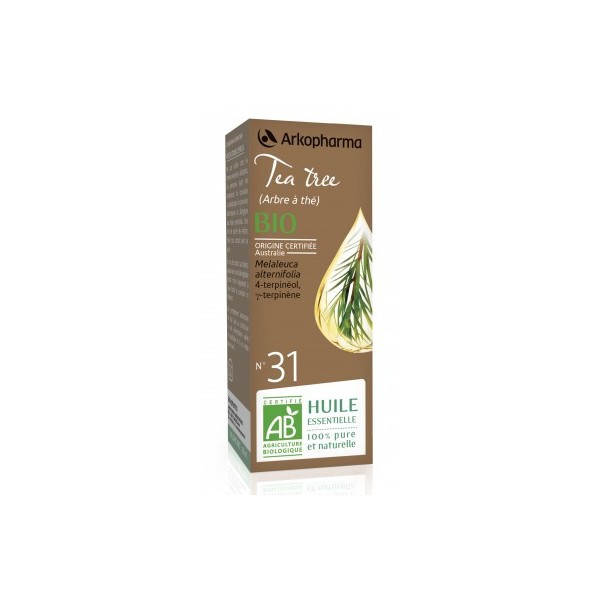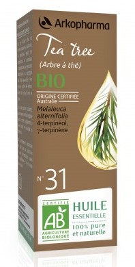 L'Huile Essentielle de TEA TREE BIO des Laboratoires ARKOPHARMA, est un antiseptique puissant contre les microbes, virus, parasites et champignons, elle désinfecte les plaies et combat les mycoses cutanées.