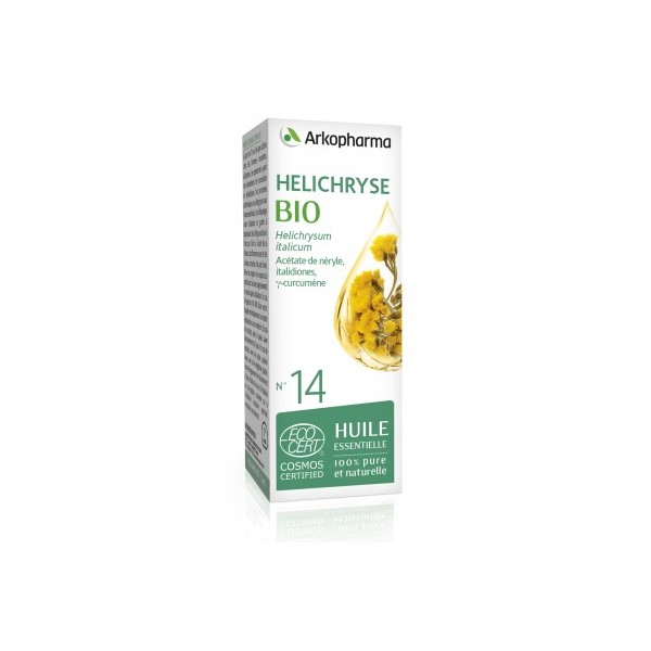 Arko essentiel huile essentielle d'Hélichryse Arkopharma est connue comme anti-hématome et anticoagulante très puissante, cette huile est utilisée pour le soin des bleus et coups, et pour aider à la circulation sanguine (couperose), raffermir les tissus et faciliter la cicatrisation.