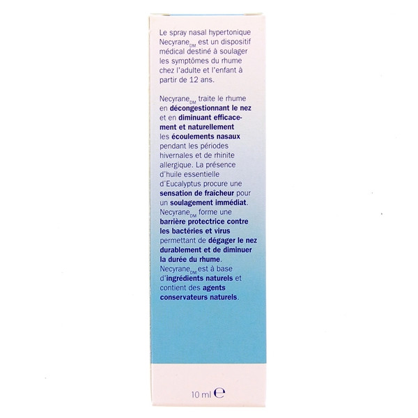 Le spray nasal hypertonique Nécyrane est un dispositif médical utilisé comme traitement d'appoint en cas de rhume ou de rhinopharyngite chez l'adulte et l'enfants dès l'âge de 12 ans.