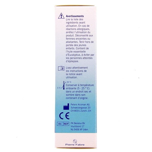 Sa formule a été développée à base d'ingrédients naturels et contient des agents conservateurs naturels. La présence d'huile essentielle d'eucalyptus offre une sensation de fraîcheur pour soulager immédiatement le nez.