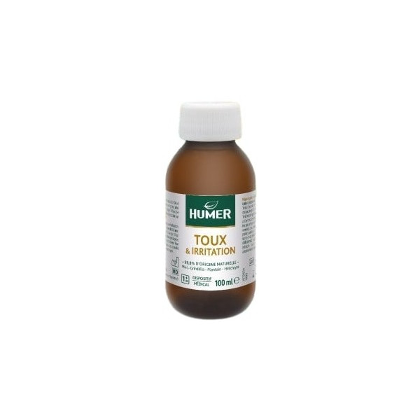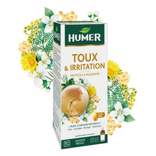 Humer Toux & Irritation est un dispositif médical sous forme de sirop. Formulé à base de 99,8 % d'ingrédients d'origine naturelle, ce sirop soulage la toux et les irritations de la gorge, tout en protégeant la muqueuse.