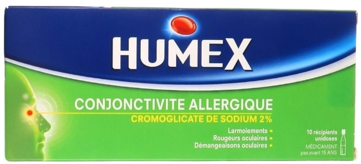 Le collyre antiallergique Humex avec 2 % de Cromoglicate de sodium est destiné à soulager et à traiter la conjonctivite allergique.