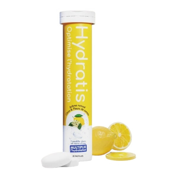 Hydratis est une pastille effervescente, à base de sels minéraux et d'électrolytes, conçue pour optimiser l'hydratation du corps. La pastille au contact de l'eau crée une nouvelle boisson aromatisée qui hydrate efficacement tout en apportant les nutriments essentiels au bon fonctionnement de l'organisme.