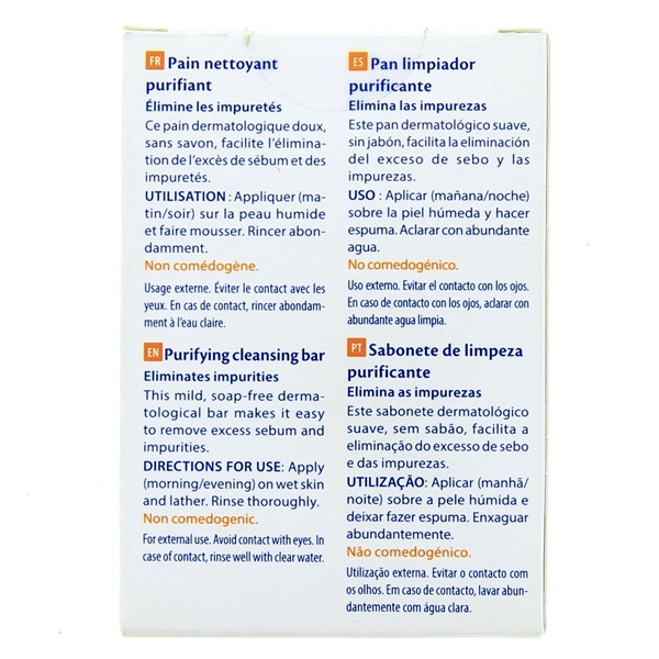 La formule de Pain Nettoyant Purifiant Hyfac est enrichie en piroctone olamine, un actif antibactérien qui participe à l’équilibre de la flore cutanée et à la prévention contre la prolifération des bactéries sources des imperfections. La composition intègre aussi du glycocolle, un acide aminé neutre aux propriétés apaisantes qui prémunissent contre les irritations. Ce pain dermatologique renferme également une base lavante douce nantie d’un agent surgraissant et d’un pH physiologique qui nettoient la peau tout en respectant l’équilibre du film hydrolipidique. Conçu pour nettoyer le visage, ce produit atténue les sensations de tiraillement. Sa formule sans savon s’adapte à tous les types de peau, même aux plus sensibles. Conditionnement : boîte contenant 1 pain de 100g.