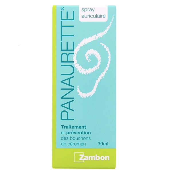 Panaurette est un spray auriculaire des laboratoires Zambon. Panaurette est utilisé pour le traitement et la prévention des bouchons de cérumen, c'est à dire les bouchons d'oreille. Le spray Panaurette est disponible sur notre pharmacie en ligne en flacon de 30ml. Panaurette offre une double action : lave et dissout les bouchons de cérumen.