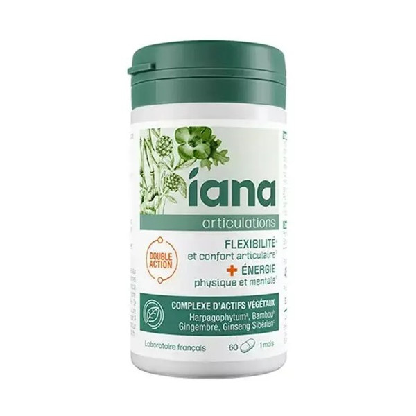 Articulations Flexibilité et Énergie x60cpr est un complément alimentaire développé par la marque Iana pour préserver la flexibilité et favoriser le confort des articulations, stimuler l’énergie physique et mentale.
