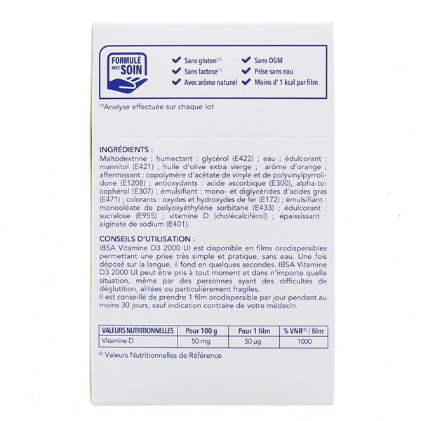 Vitamine D3 2000 UI x30 films orodispersibles IBSA