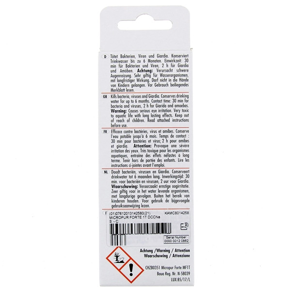 - En cas d'eau trouble, un filtre Katadyn est nécessaire avant l'usage de Micropur Forte.