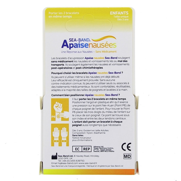 Les bracelets Sea-Band sont doux et confortables, s’adaptent à toutes les tailles de poignets des enfants dès 3 ans et peuvent être réutilisés après lavage à la main.
