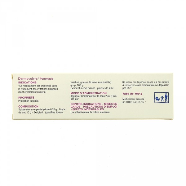 La pommade Dermocuivre du laboratoire Chauvin Bausch + Lomb est indiqué pour soulager les irritations cutanées dont les érythèmes fessiers.