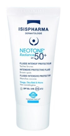 Diminuez vos taches pigmentaires et protégez votre peau des rayons du soleil avec le fluide intensif protecteur NEOTONE® Radiance SPF 50+.