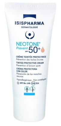 Protégez et unifiez votre peau avec NEOTONE® Prevent SPF 50+, soin teinté conçu pour prévenir l’apparition des taches brunes et adapté aux femmes enceintes et allaitantes.