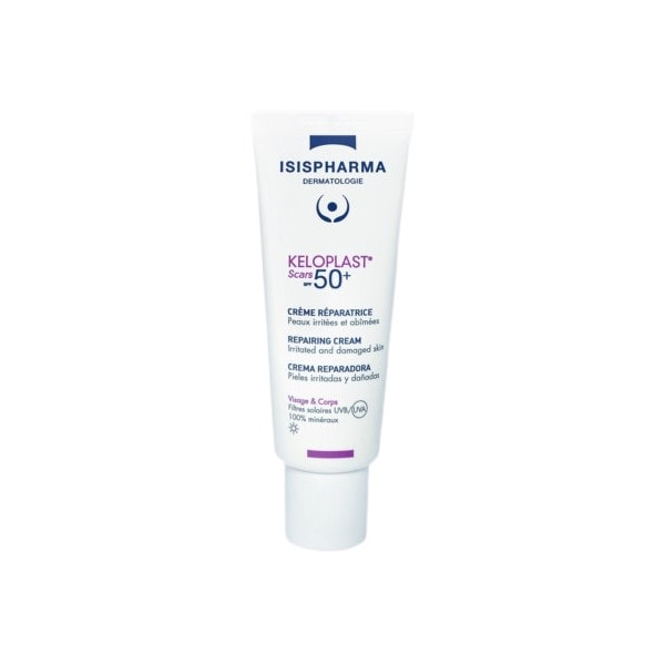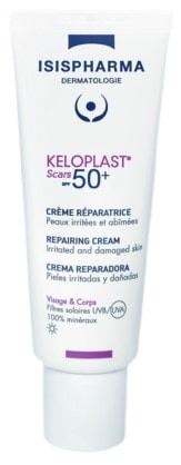 La crème réparatrice Keloplast® Scars SPF 50+ d'Isispharma contribue à la restructuration de la peau tout en la protégeant des agressions extérieures.