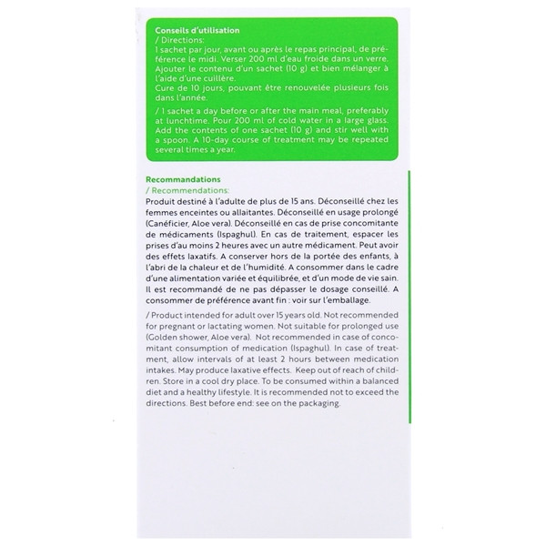 Préparez votre boisson en versant 200 ml d’eau froide dans un verre, puis ajoutez le contenu d’un sachet (10 g). Mélangez soigneusement jusqu’à dissolution complète. Consommez un sachet par jour, avant ou après le repas principal, idéalement le midi. Effectuez une cure de 10 jours, renouvelable plusieurs fois par an si nécessaire.
