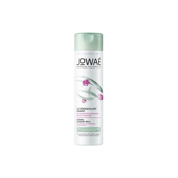 Jowaé Lait Démaquillant Apaisant 200 ml aux Lumiphénols antioxydants & à la Pivoine impériale nettoie et démaquille les peaux normales à sèches même sensibles.